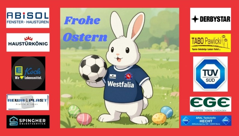 Der SC Westfalia 04 Herne wünscht allen Fans, Mitgliedern, Spielern, Trainern, Betreuern, Helfern und Sponsoren wunderschöne Ostertage. Lasst es Euch